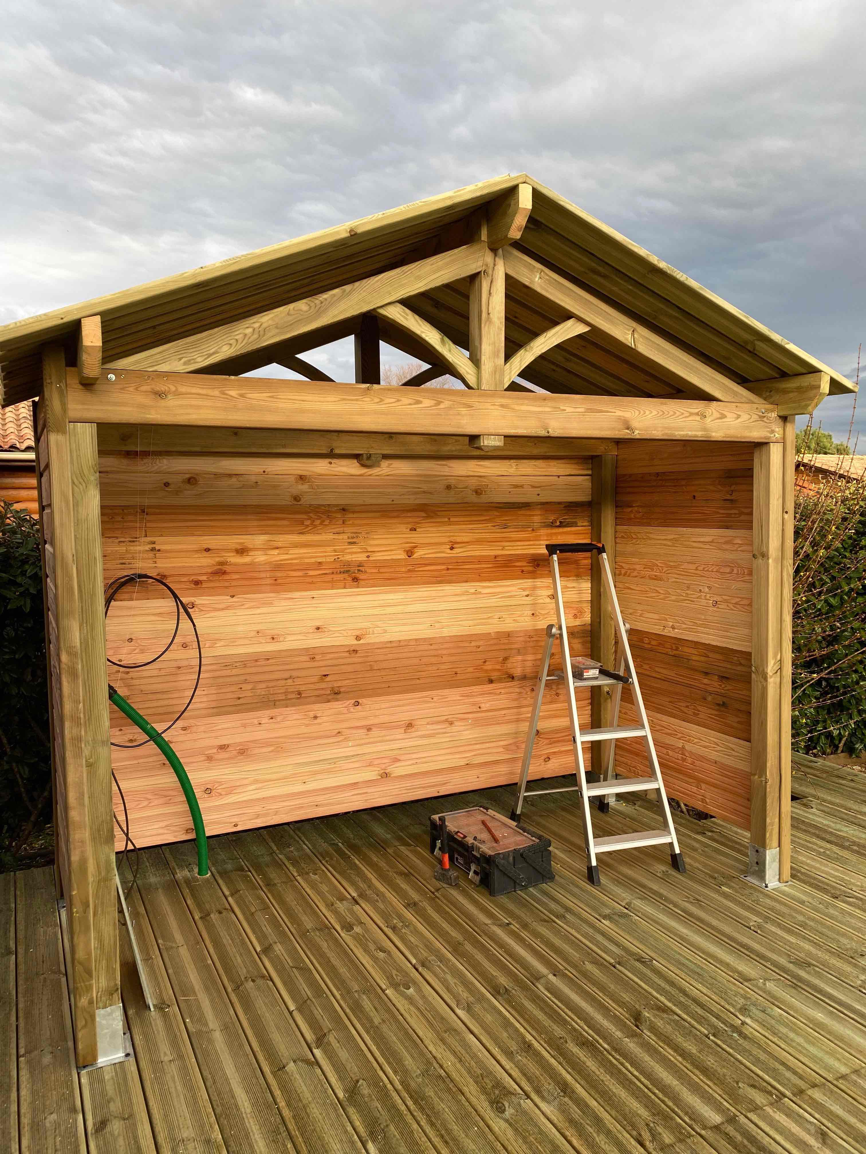 – La fabrication d’un abri de jardin et cuisine d’été sur mesure en bois