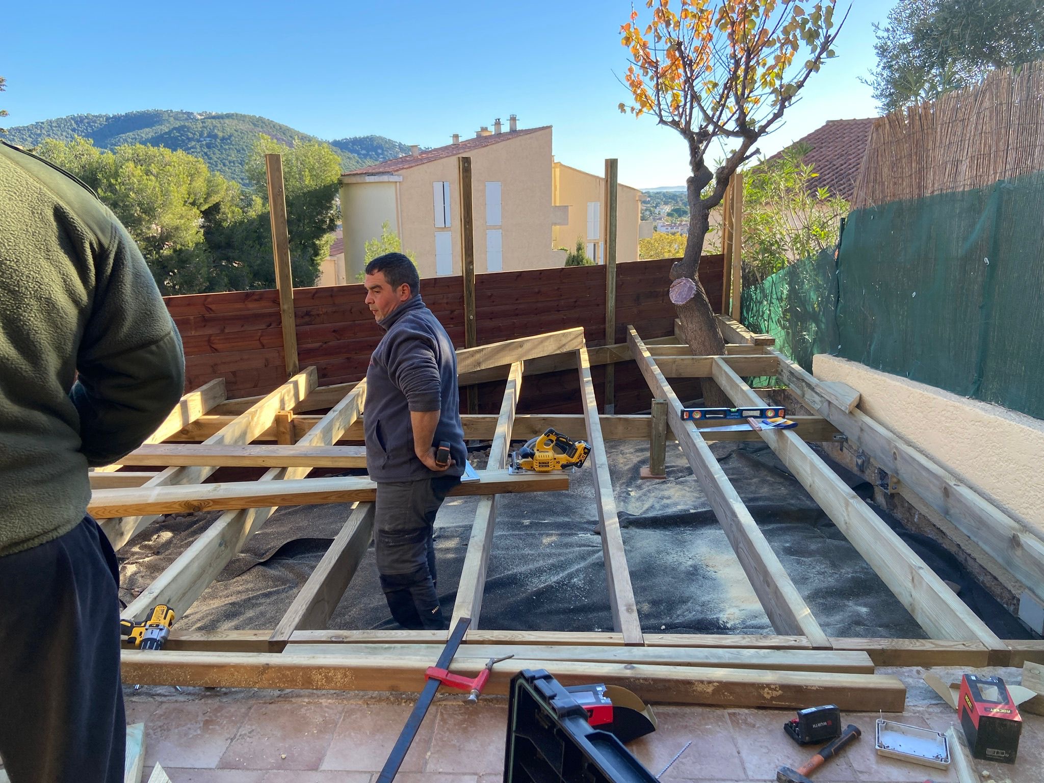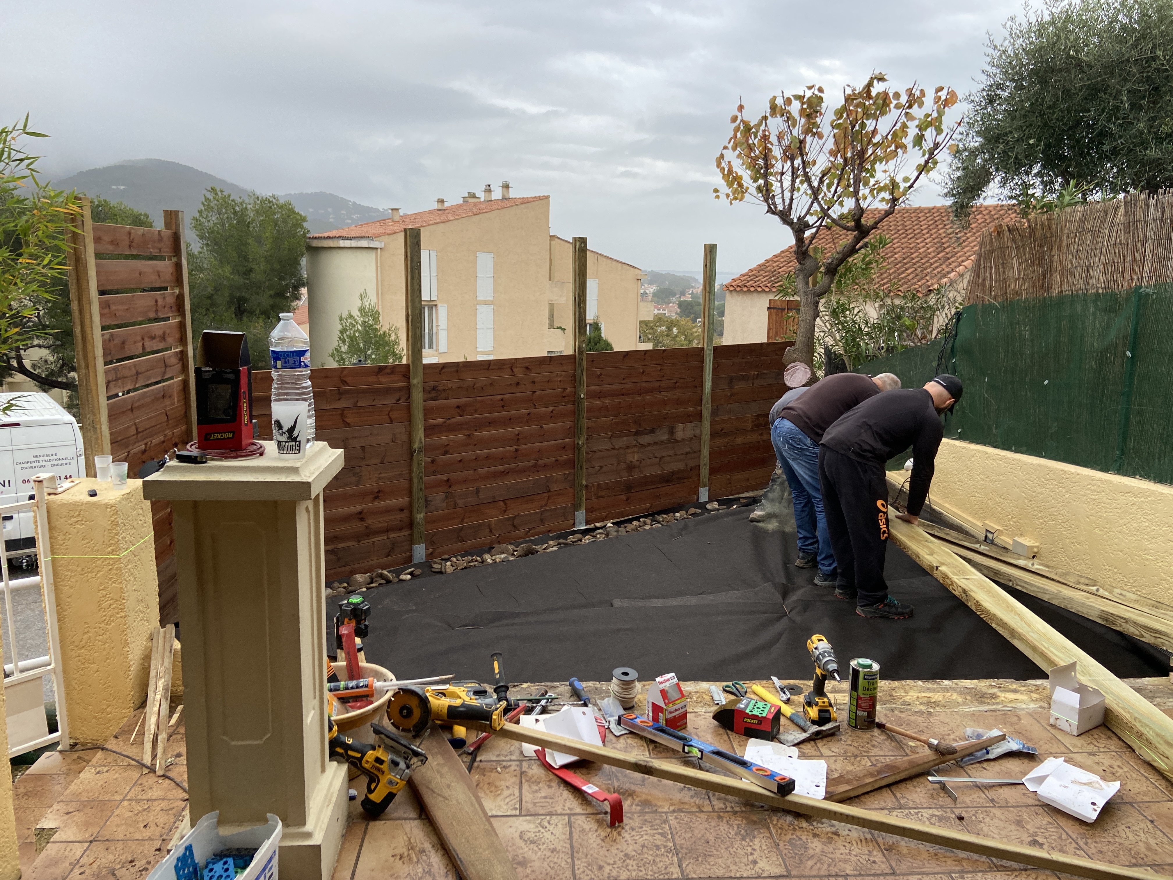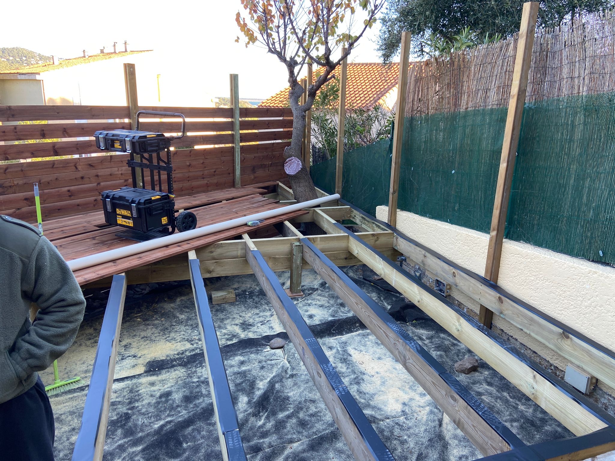 Rénovation complète d’une terrasse qui était sur 3 niveaux afin d’en faire une seule et même grande terrasse en bois. Différentes étapes se sont donc enchaînées, à découvrir dans les images ci-dessous.