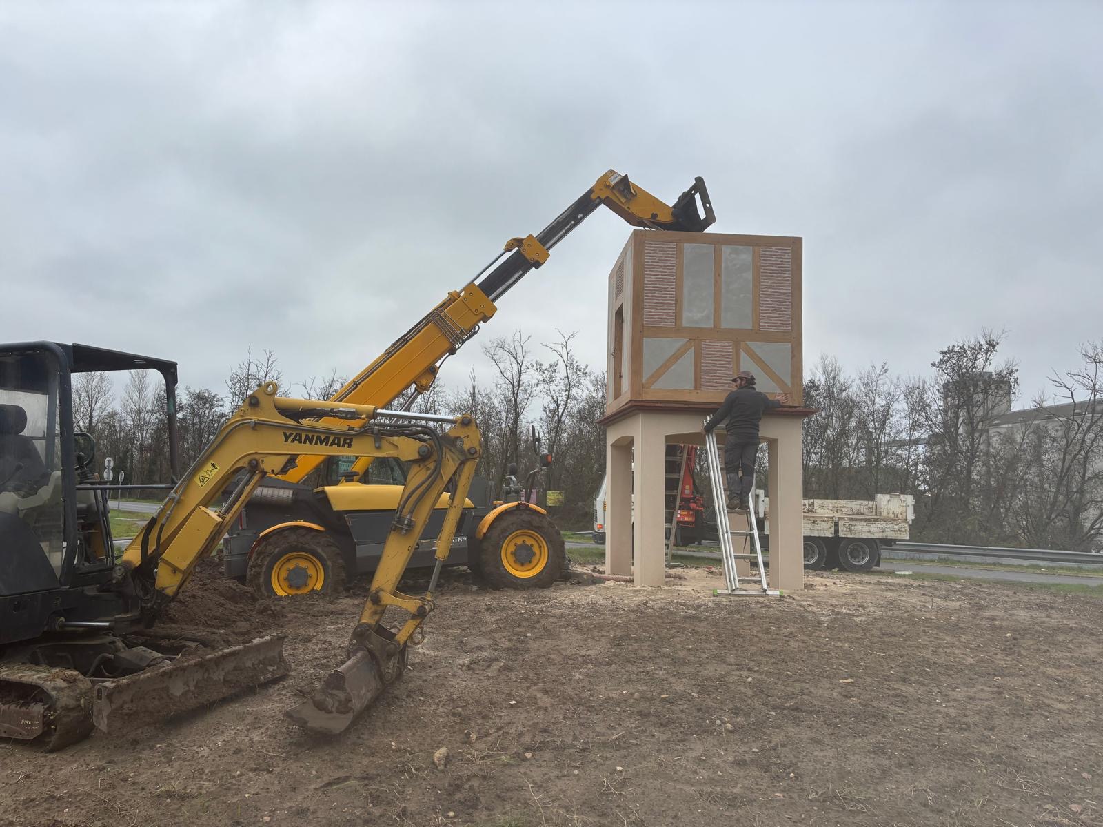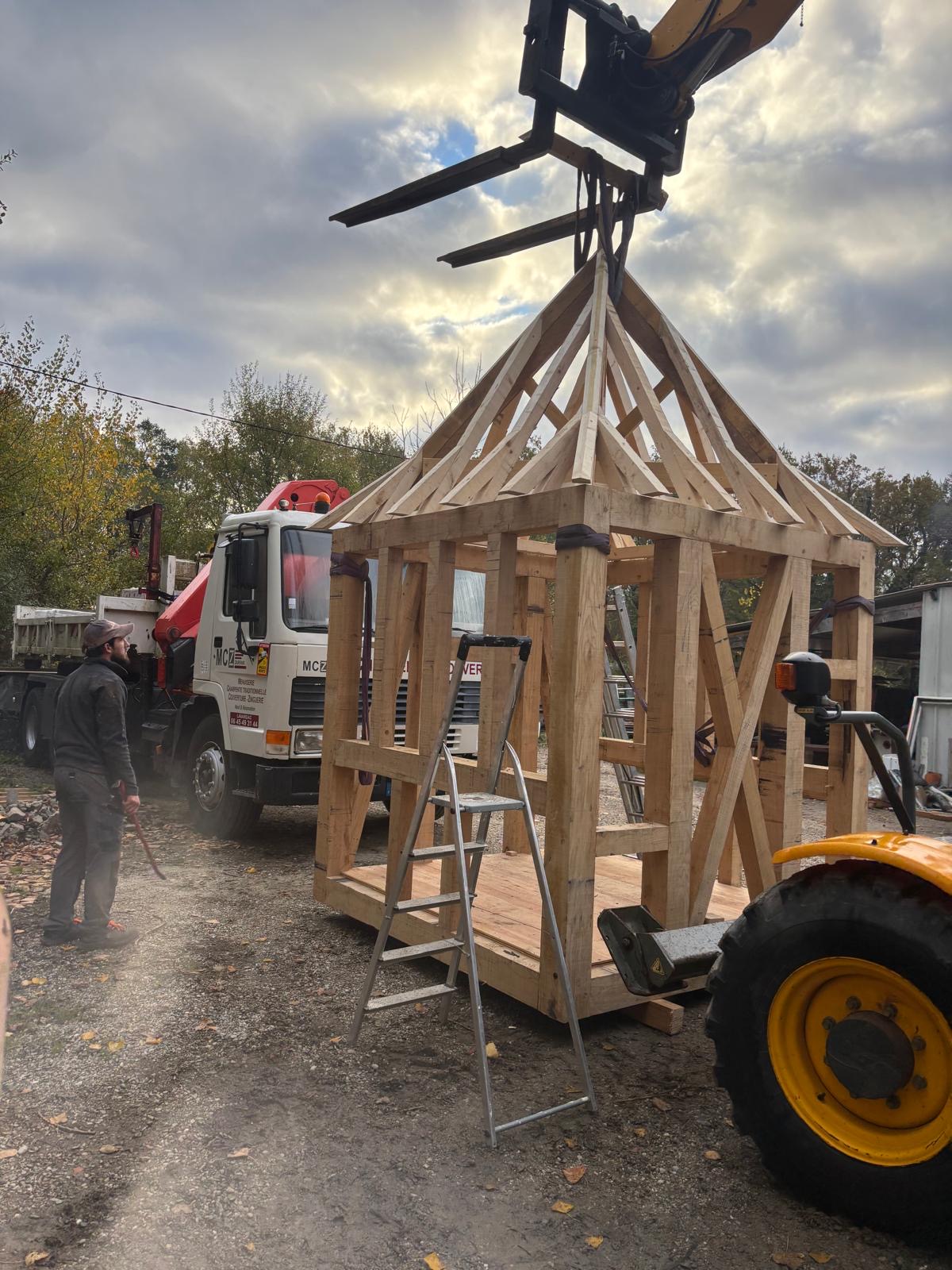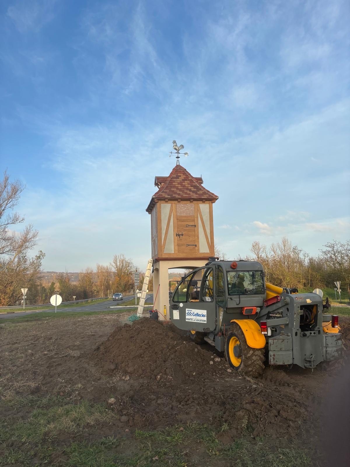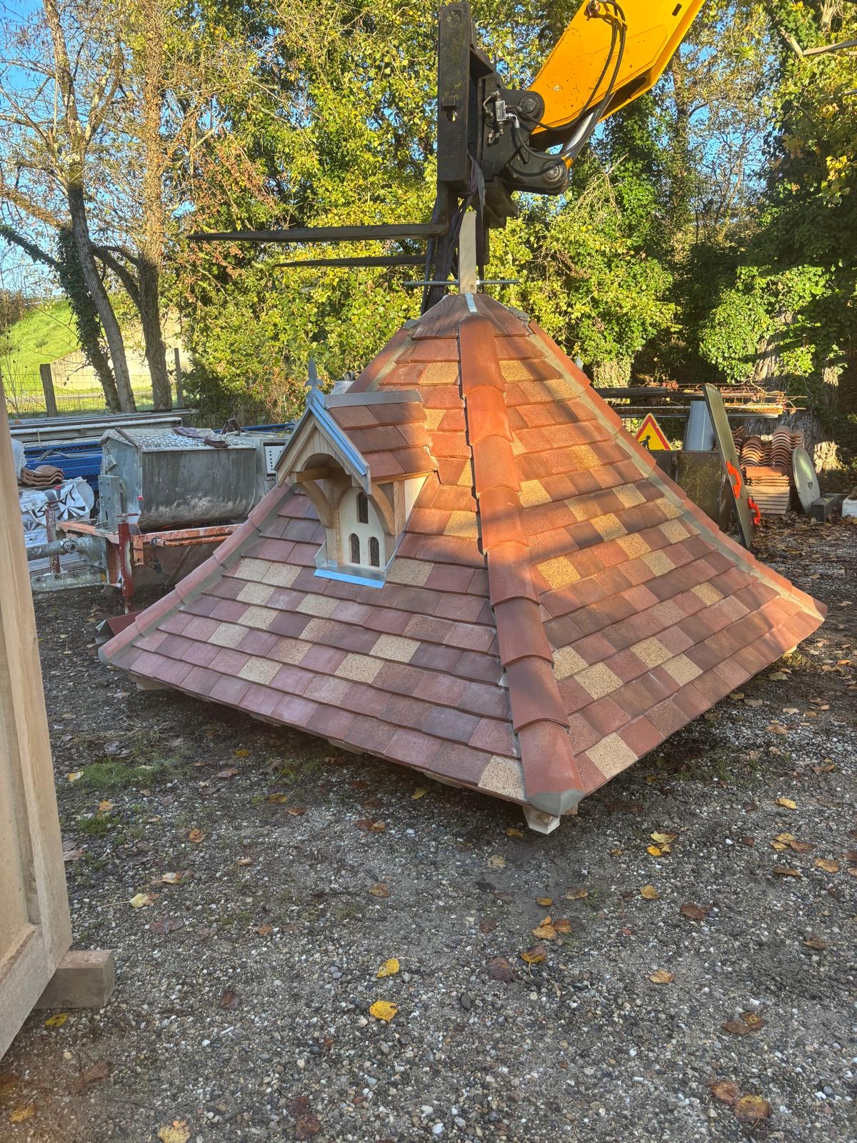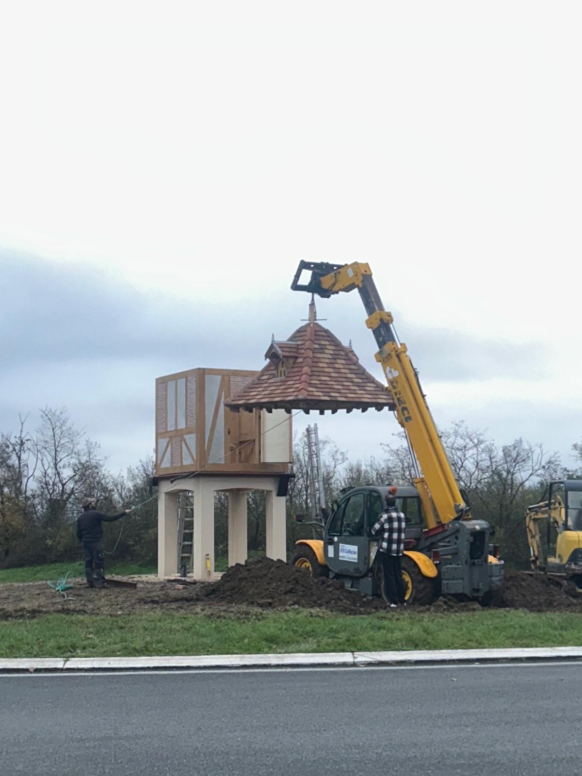Construction complète d’un pigeonnier pour la ville de Feugarolles : menuiserie, charpente, création du coq…